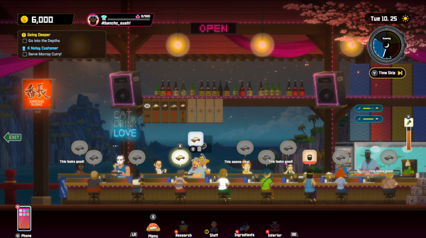 게다가 해양 탐험과 초밥집 운영은 양쪽 모두 구색 맞추기가 아닌 깊이 있는 콘텐츠를 갖췄다. 바다 속에서는 심해어를 사냥하고 수집할 뿐만 아니라 보물을 찾거나 보스 몬스터와 싸우기도 한다. 또 초밥집에서는 레시피를 업그레이드하고 알바를 고용하는 한편 SNS를 통해 음식점의 평판도 올려야 한다. 분명 따로 놓고 보면 어디서 본 적 있는 것들인데, 합쳐 놓으니 비슷한 게임이 떠오르지 않는다.