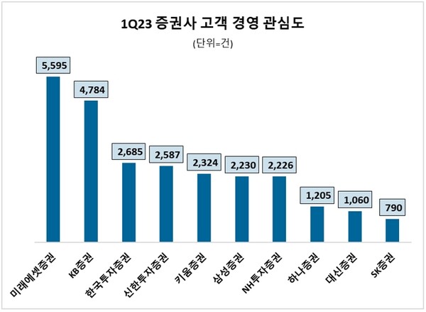 신한투자증권은 2587건으로 4위, 키움증권이 2324건으로 5위에 랭크됐다.