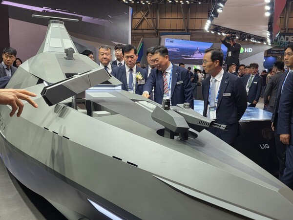 한편, 정기선 HD현대 수석부회장은 이날 부산 벡스코에서 열린 MADEX 현장을 찾아 전시 부스를 둘러보고 "AI 기반의 무인화 및 자동화, 전동화 등 첨단 기술을 바탕으로 대한민국의 해양 방위를 넘어 글로벌 해양 안보를 뒷받침하는 최고의 함정을 만들 계획"이라고 말했다.