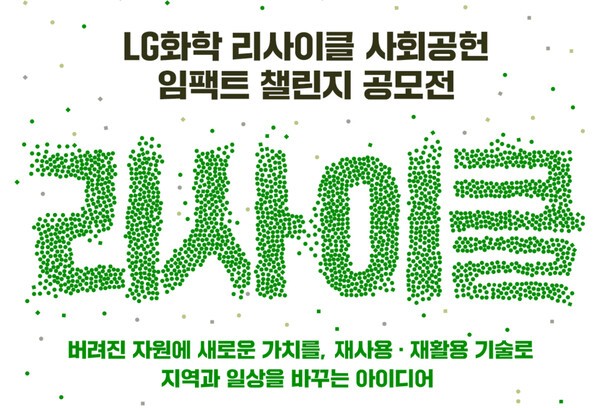 LG화학은 18일 국제구호개발 NGO 희망친구 기아대책과 함께 '리사이클 사회공헌 임팩트 챌린지' 공모전을 연다고 밝혔다. 이번 공모전은 버려진 자원을 재활용해 지역사회와 일상을 변화시킬 수 있는 혁신적인 아이디어를 찾는 데 목적이 있다.