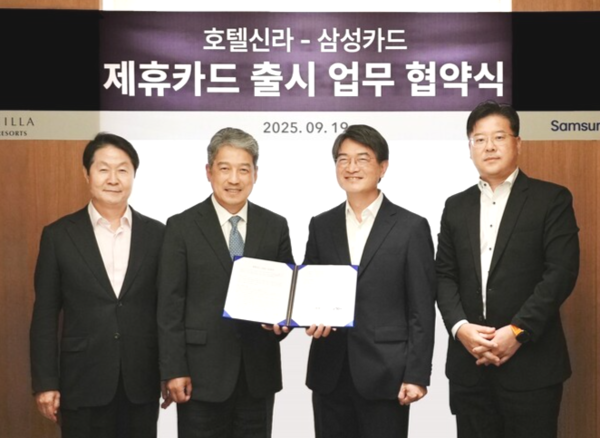 협약식에는 김상규·김대순 삼성카드 부사장과 이정호·박상오 호텔신라 부사장이 참석했다. 양사는 이번 협약을 통해 신라호텔 제휴카드를 선보이고, 공동 프로모션 등 다양한 협업을 추진해 시너지를 강화할 계획이다.