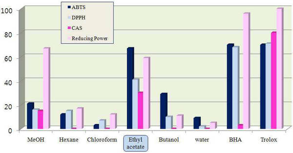 이 시료에 휘발성을 지닌 '메탄올' 용매로 사용하는 추출법으로 천연 물질을 얻어냈다. 이후 해당 물질의 항산화 활성을 분석했고, 항산화 활성이 높은 추출물에서 또 다시 물질을 분리해 그 화학 구조를 분석했다.