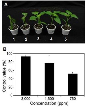 실험 결과 7종의 식물병 중 3종의 식물병에 대해 효과가 입증됐다. '벼잎집 얼룩병(벼잎짚 무늬마름 병)'과 고추 농가의 적인 '고추 탄저병', 토마토 역병 등이다.